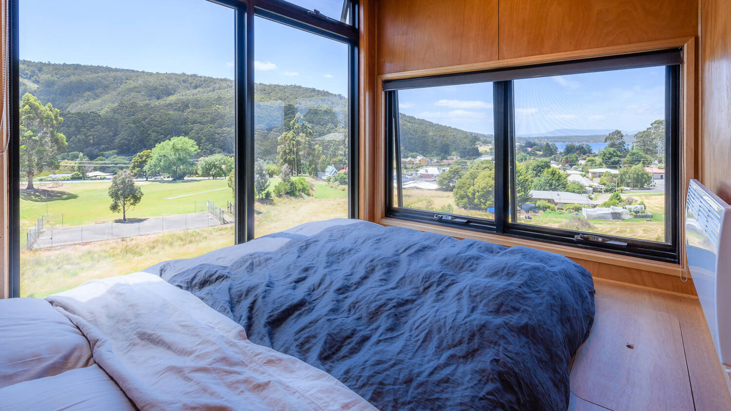 Constructed in a small fishing village 60km south of Hobart this home has sweeping views across Dover Bay and out towards Bruny Island. It sits high on the hill and is the ultimate holiday getaway.
